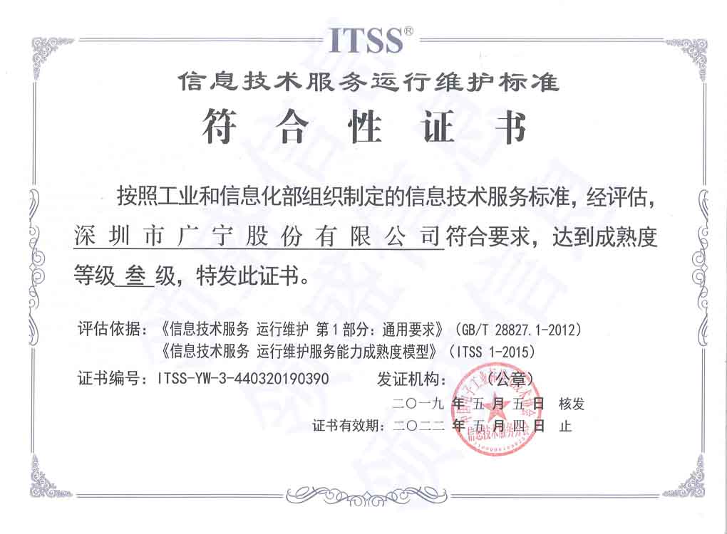 祝贺广宁实业顺利通过ITSS认证三级(运行维护模型)!